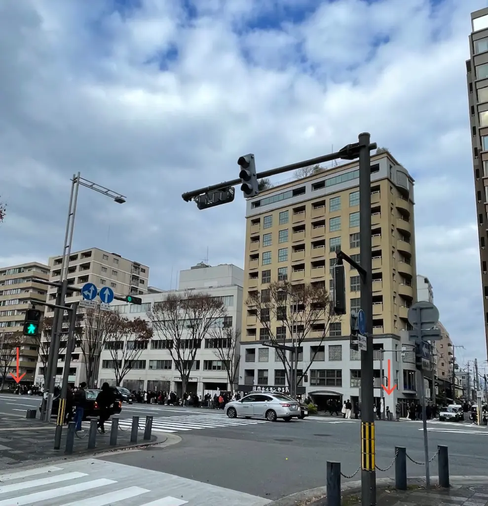 御池通(おいけどおり)左の矢印が、最後尾。